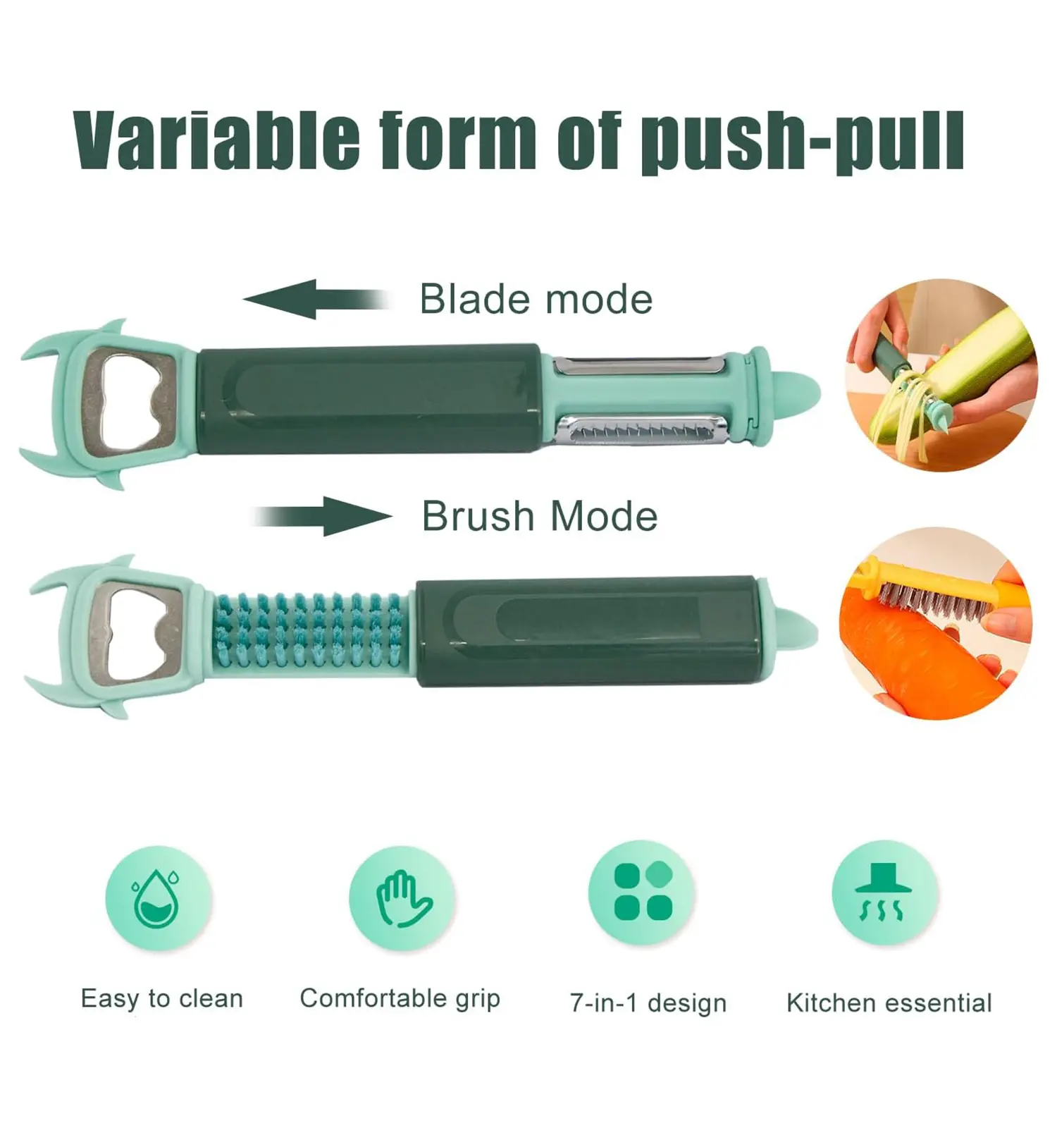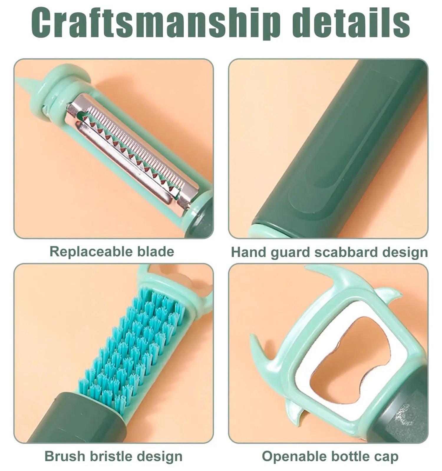 - قابل استفاده به عنوان پوستکن، رنده، رشتهکن، دربازکن، فرچه و…