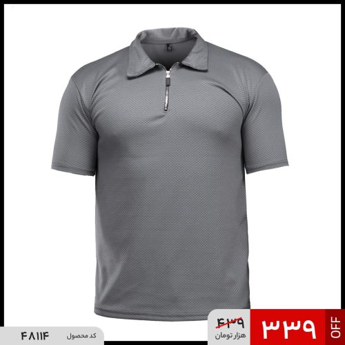 تیشرت یقه دار نیم زیپ مردانه طوسی نخ پنبه بیسکویتی